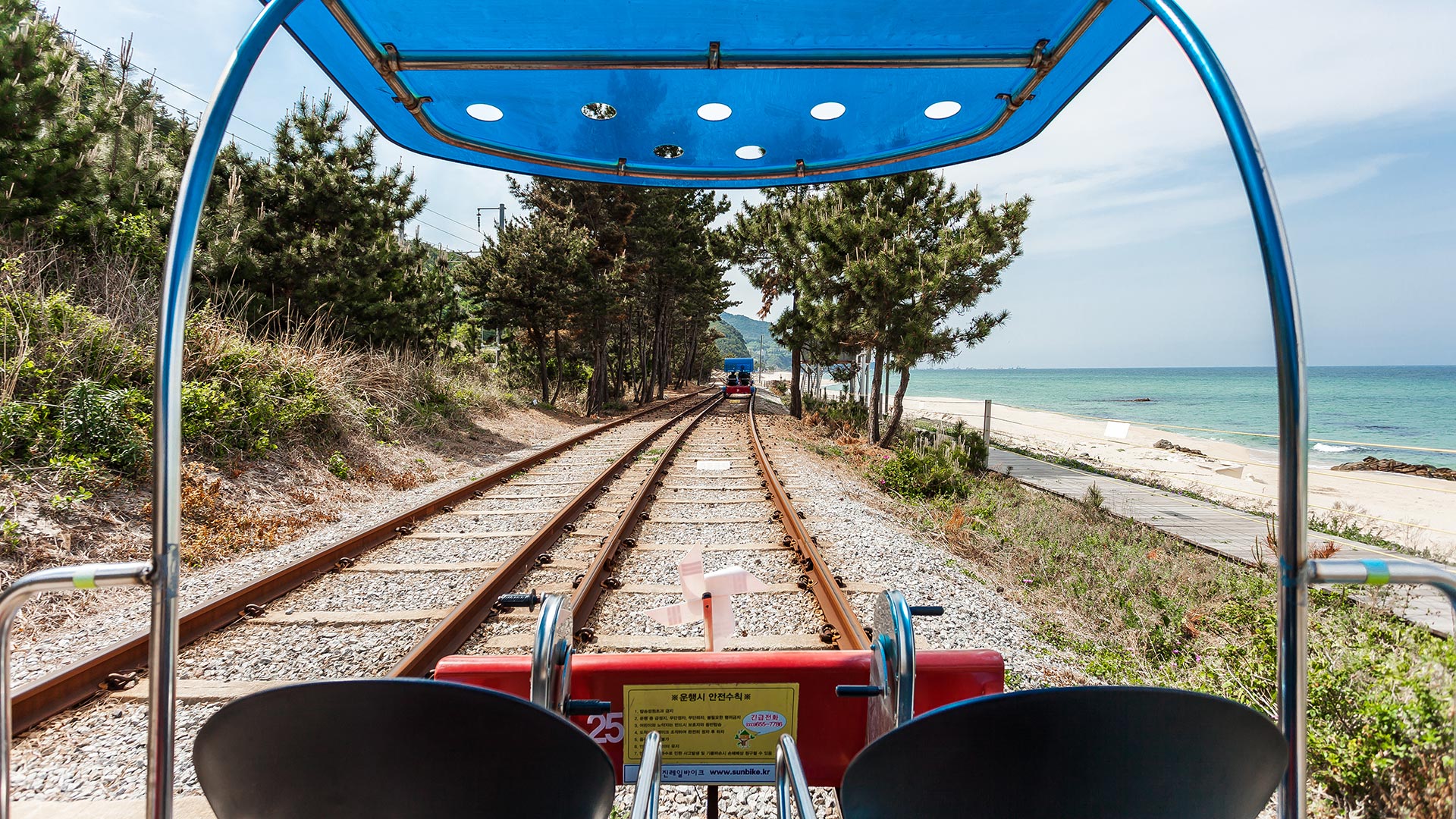 정동진 레일바이크 드라마 '모래시계'의 배경으로 유명해진 정동진은 세계에서 바다와 가장 가까운 역으로 기네스북에 등재된 곳입니다. 이곳의 폐철로를 따라 달리는 레일바이크는 시원한 바닷바람을 맞으며 해안 절경을 가장 가까이서 만끽할 수 있는 낭만적인 액티비티입니다.