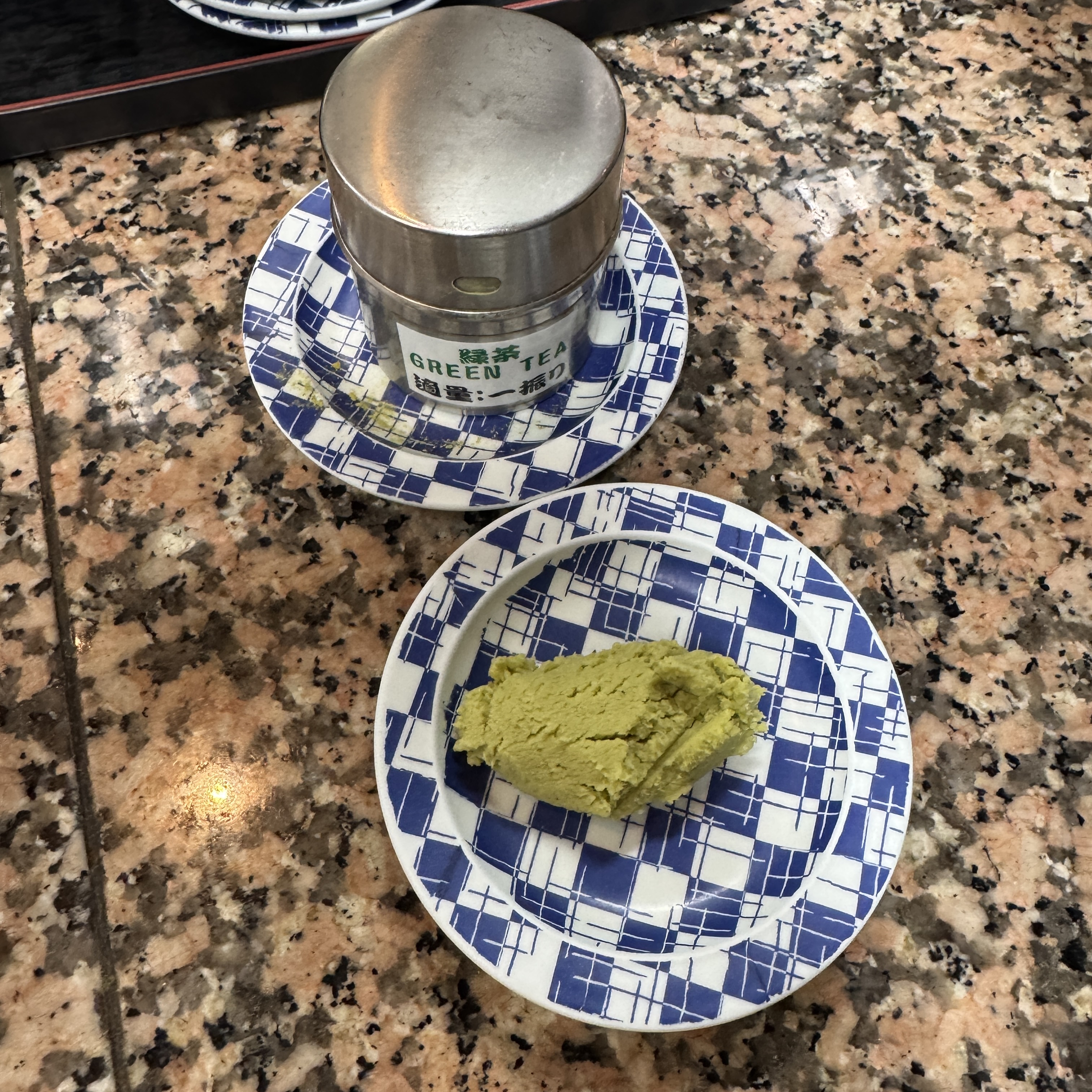 처음 서빙해주시는 분이 와사비와 녹차 가루를 주시는데, 테이블에 있는 뜨거운 정수기에서 물을 받고 녹차가루를 뿌려 드시면 됩니다.