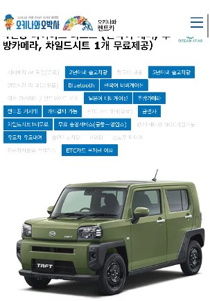 4인승 다이하츠 타프트 (한국어 네비, 후방카메라, 차일드시트 1개 무료제공)를 예약했는데, P들의 여행이라 그런지 늦게 예약을 해서 3박 4일 기준으로 30,600엔으로 예약했습니다.
