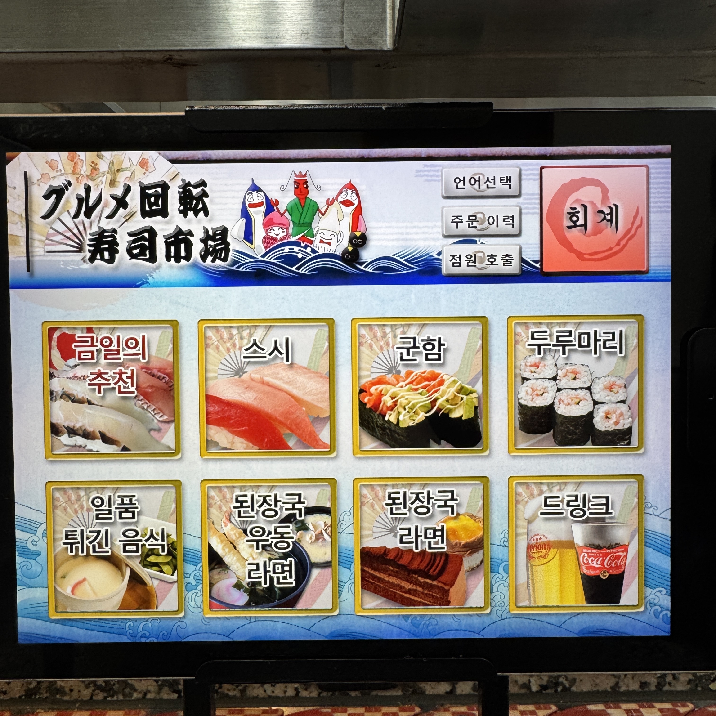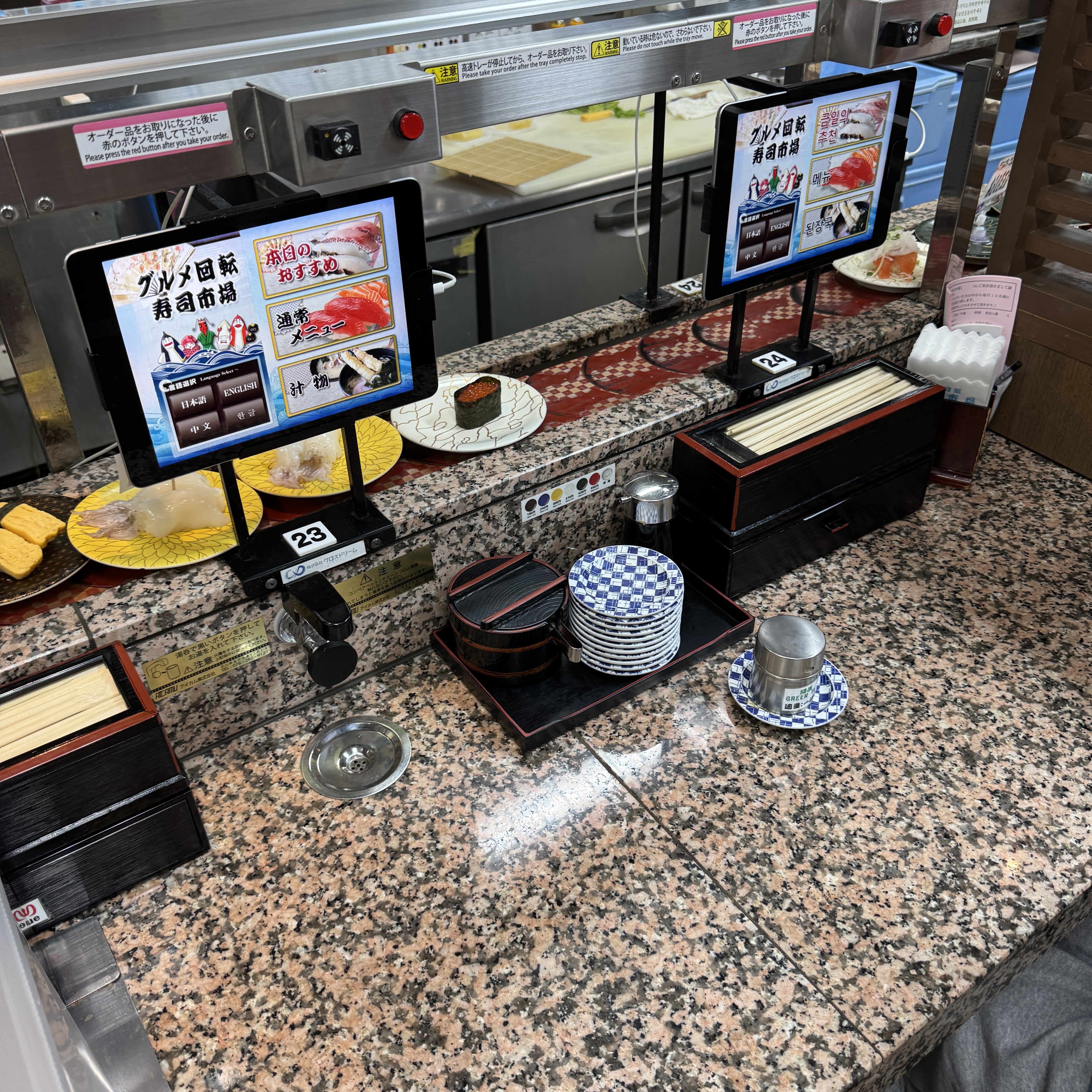 가게되면 이렇게 각자 태블릿을 통해 주문할수도 있고 회전초밥 중에서 골라서 먹을수도 있습니다.